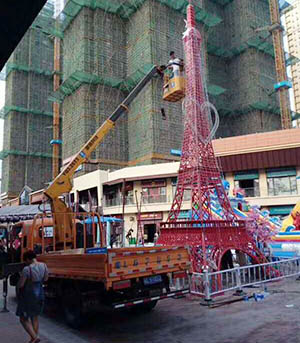☆ 3.2吨3节臂吊机+吊篮+无线遥控器,高空作业高度12米左右;