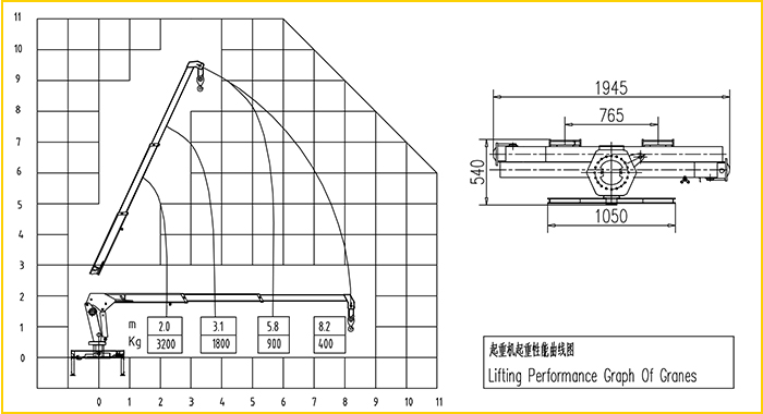 3.超长工作臂 3.2吨3节臂工作半径8.2米,举升高度9.8米,安装高空吊篮,作业高度达12米;