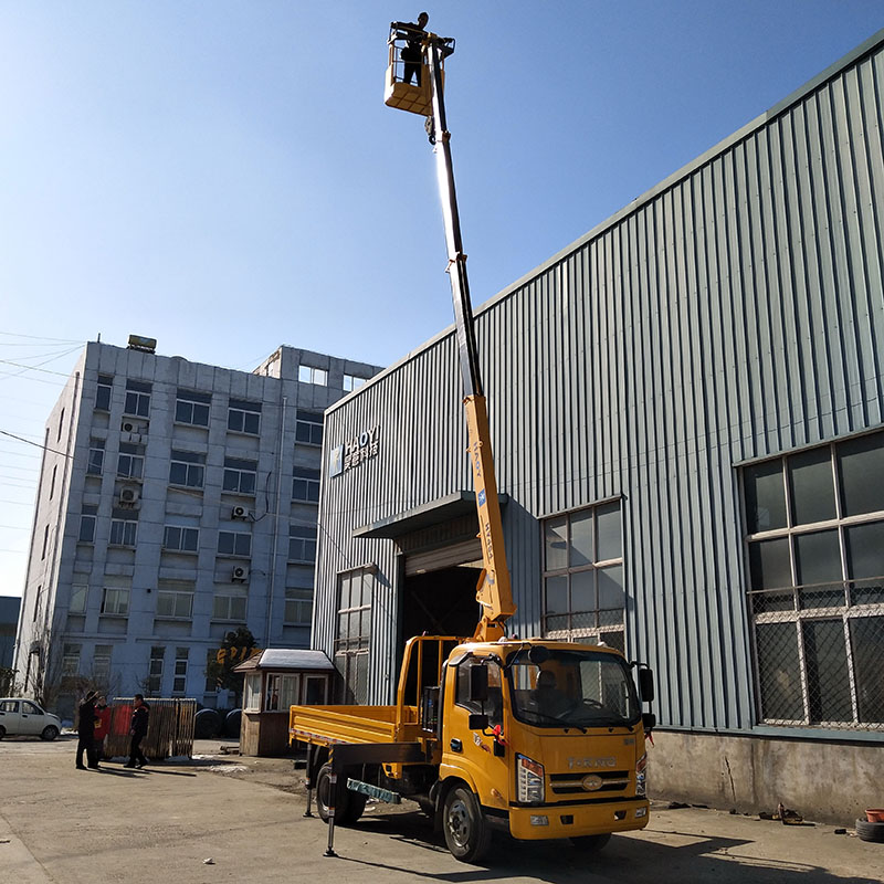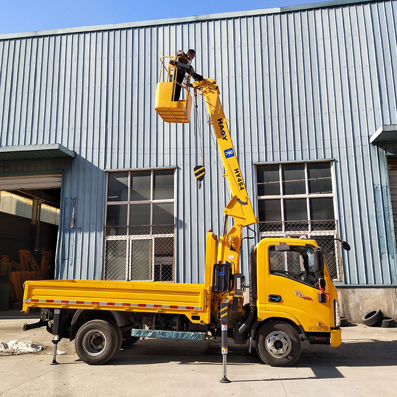 黄牌高空作业车随车吊的工作高度有15.5米(6.3吨4节臂),17米(8吨4节臂),20米(8吨5节臂);