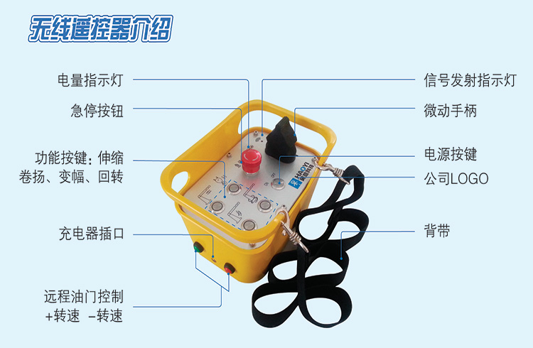 遥控具有微动性,具有伸、缩、变、回等动作,侧边有油门加减等;全、简单、便捷,操作、系缆、挂卸可由一人单独承担,无需指挥,省一个人挂吊钩,能为您节约一大笔人工成本;