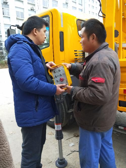 给客户讲解如何操作,及随车吊的日常保养等知识,客户自己遥控操作。站在合适的位置,视野更开阔。