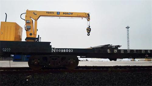 近日,为山东某铁路分局设计生产的小型轨道起重机安装调试完成,受到铁路领导的一致好评。这款铁路液压轨道起重机4吨,配的柴油机液压泵站(用于提供液压吊机的动力)力矩限制器(防止误操作)。