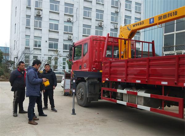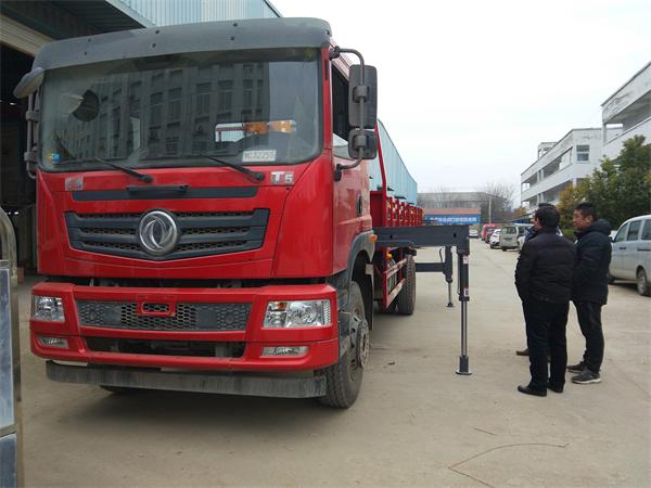 近日,安徽一客户来厂提东风T5新款驾驶室配4吨3节臂吊机。该款车是东风T5钻石红车身,玉柴180发动机,陕齿8JS85E变速箱带取力器,5.5吨前桥,10吨后桥,300mm车架局部三层,10.00R20钢丝胎,含ABS,GB7258新规车型。