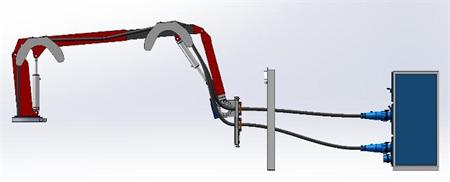 船舶岸电举升臂是在船舶停靠港口作业期间,把岸上的电缆输送到船上的一种举升设备。如图所示: