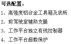 另:保护功能 上下车互锁、极限保护、软腿保护、应急泵、双向平衡阀等