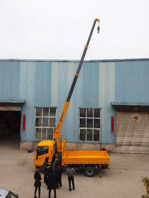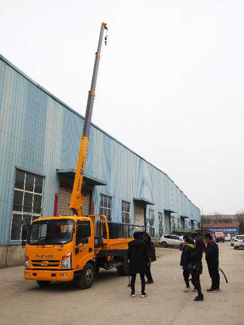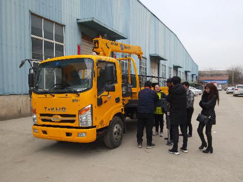近日,安徽宿州客户来厂提车4吨蓝牌多功能随车吊,配置无线遥控器和高空吊篮,一车多用,省人省钱,提高整车的经营收入,满足了用户对随车吊多用途多挣钱的强烈要求。