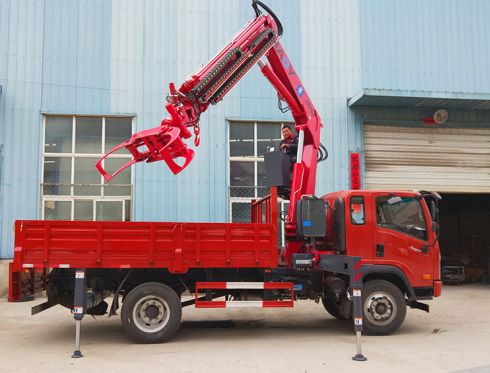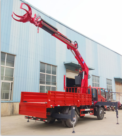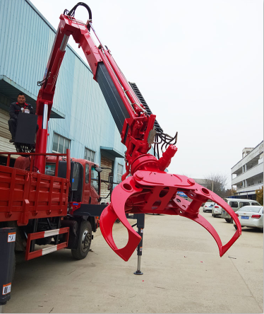 大运底盘配6吨抓具吊,该系列产品是为林场、木材基地等设计、生产的一种全液压式抓取设备,非常方便木材运输的装卸工作。另外,本系列产品可选装不同用途,不同规格的抓具,应用在码头、垃圾厂、采石厂、废钢厂等领域。