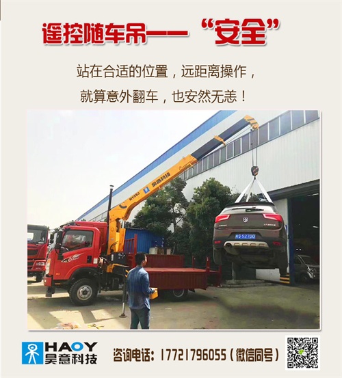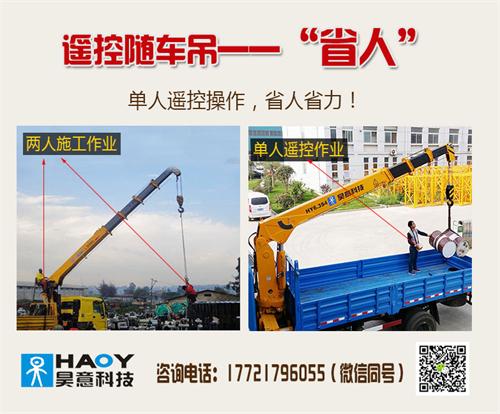 而配有无线遥控器的随车吊,手持无线遥控器,一个人就可完成操作和指挥的工作,完全可以省下一名人员,光这一点,一年就至少省下几万元的支出。