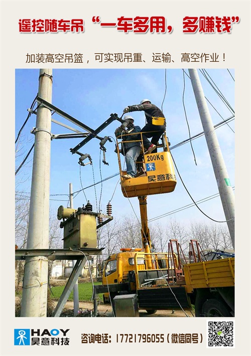 可增加吊篮,实现吊重、运输、高空作业,一车多用,节能,省人省钱,提高整车的经营收入,满足用户对随车吊多用途的要求。