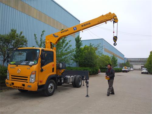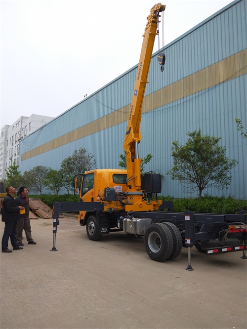 上装是:5吨4节臂伸缩臂吊机,作业半径11.2米,举升高度12.8米,360°全回转。