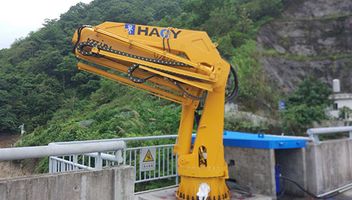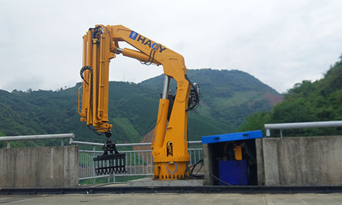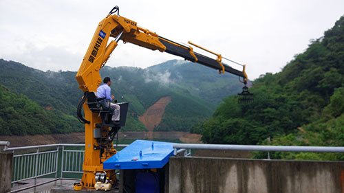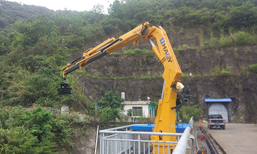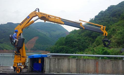 广西客户订购的12吨折臂液压吊配抓具,主要用于山区河道内垃圾、废弃木头等清理。近日,我厂派人去安装调试液压抓具吊,并培训客户如何操纵,亲自体验操作等。