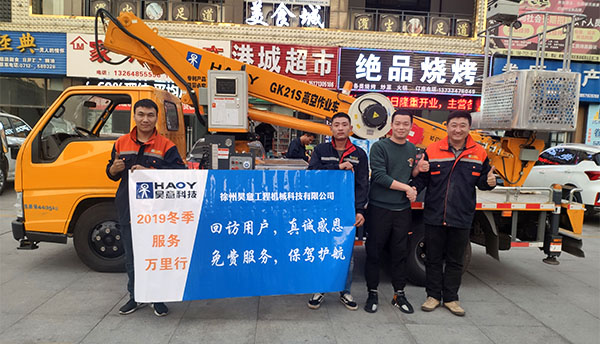 徐州昊意科技2019冬季服务万里行开启了。针对17米、20米、21米、23米蓝牌高空作业车用户为期一个月左右的免费服务,保驾护航。首站:河北孝感客户21米蓝牌高空作业车客户,服务小组一早就到了,对高空作业车检修、维护、保养。