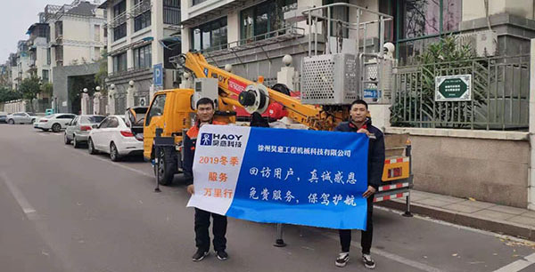徐州昊意公司承诺:高空作业车每年夏季和冬季两次回访客户,免费服务,上门到户,维护保养。请放心使用,我们为您保驾护航!17721796055(微信同号)