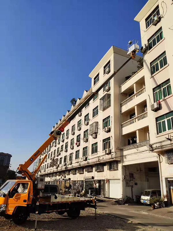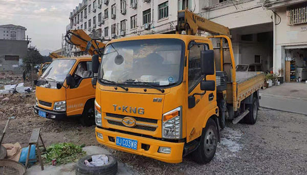 到了台州,首先服务的客户是购买我们2台产品的杨老板,2018年3月份,杨老板在我公司购买了一台唐骏蓝牌4吨4节臂无线遥控随车吊+吊篮+后支腿,工作高度14米,起重量4吨,蓝牌车,C照可以开,可以吊重、拉货、高空作业车,一辆车三种用途,赚钱途径更多,回本更快,杨老板买回去之后主要干了高空作业的工作。