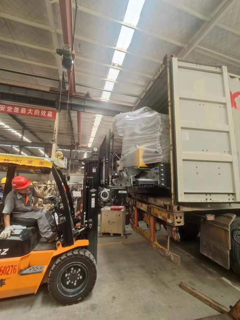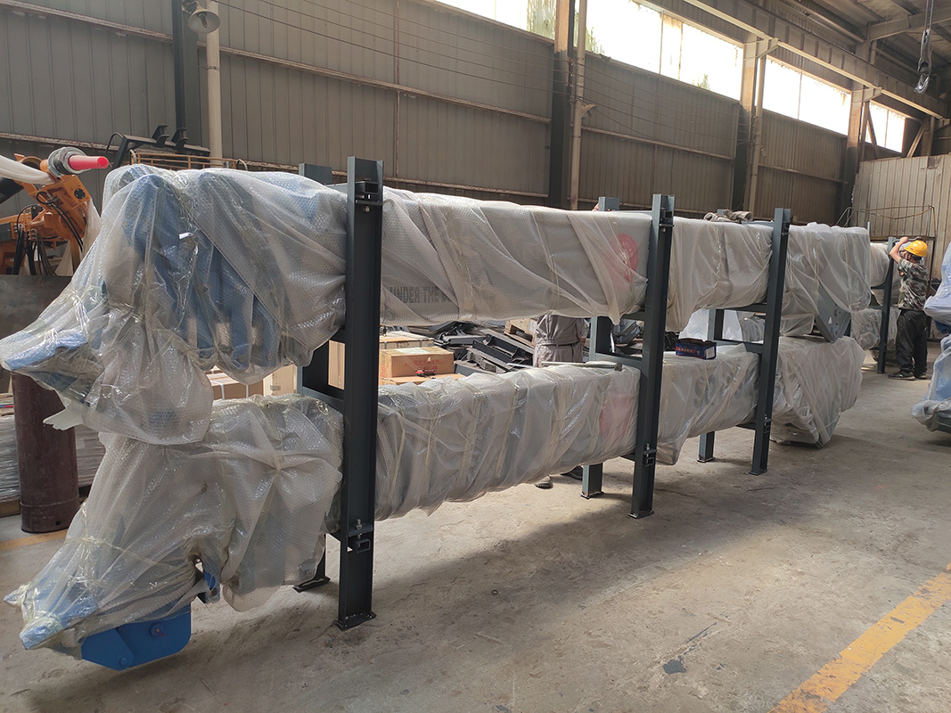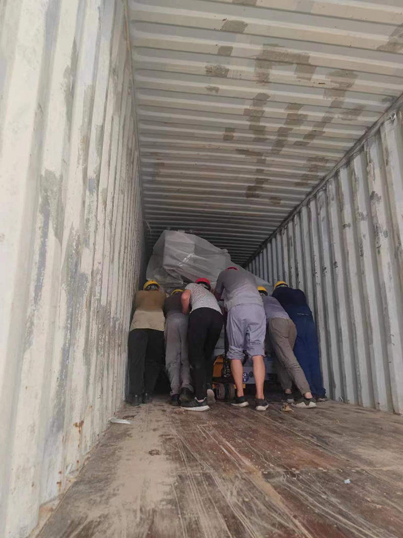 2022年8月,6台10吨5节臂无线遥控随车起重机装柜完成,发往菲律宾。