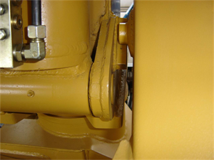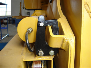 稍微伸出二折臂油缸使二折臂上的防止吊臂下落的机构与转台上的相应机构接触,如上右图示。