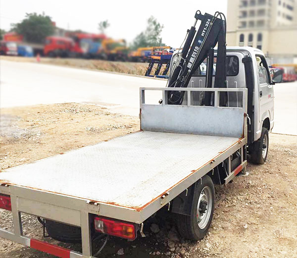 如上图:农用车改装吊机必须要折叠臂的,不占用货箱空间,其次是农用轻卡车只能装小吊机,遵循小车配小吊的原则。我们公司有三款,吊重800公斤,吊重1300公斤,吊重1800公斤,吊重2800公斤的车载折臂小吊机,专门针对于农用车或者轻卡的改装。