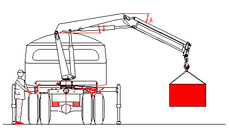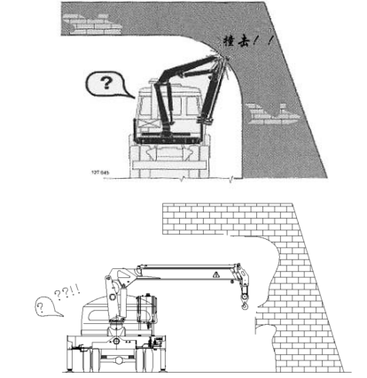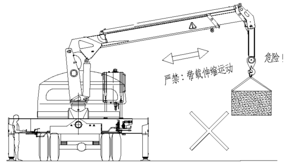 直臂式随车起重机,如下图示状态,严禁带载伸缩工作。