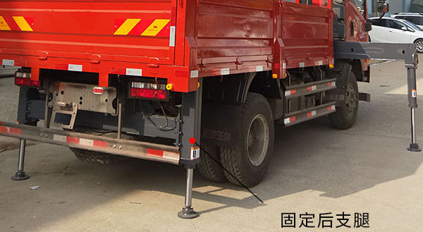 (1)固定后支腿:可以垂直上下伸缩,不可以水平伸缩。支腿跨距1900mm左右;一般用于蓝牌随车吊3吨,4吨小吊机,安装这种固定后支腿即可,整车更加稳固。当然,如果吊的货物很轻,蓝牌车可以不用加支腿。
