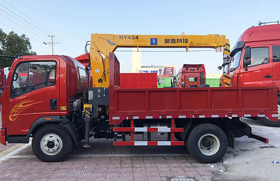 (2)重汽随车吊:重汽底盘车价位适中,130马力,整车也比较扎实,可以拉重货,价格不高,整体配置不错。