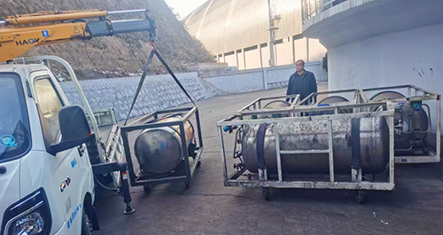 这个客户是装卸,运输天燃气瓶的(天然气瓶是用来贮存压缩天然气的高压容器,这种装有易燃易爆气体的高压容器是具有爆炸性危险的压力容器)。天然气瓶具有危险性,再加上人工费用高,客户选择我们这种车载小吊机。
