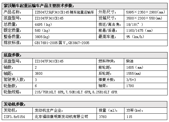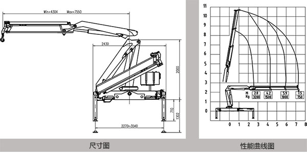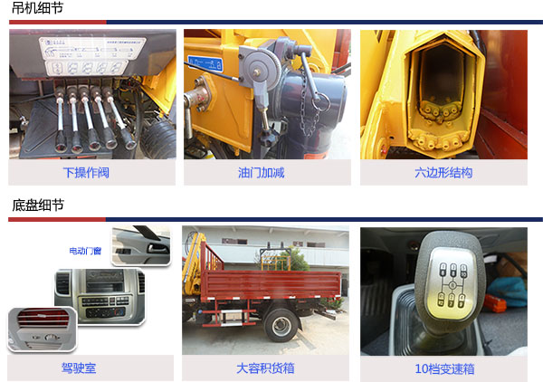 3吨折臂随车吊以全缩空间850mm,满足工作幅度7.5米,举升高度10.6米;