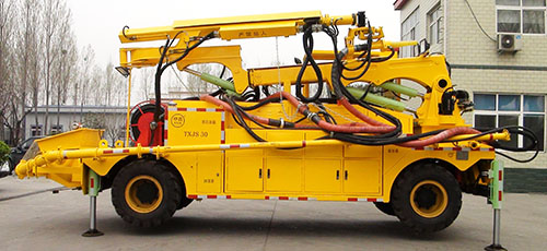混凝土湿喷机结构优良、牢固,抗冲击能力强。工作臂施工无盲区;施工转场方便;施工效率高。